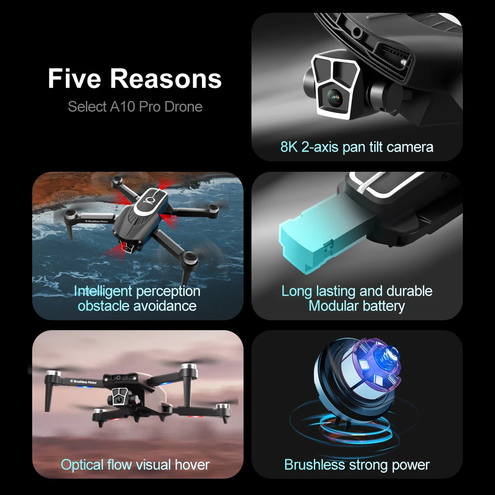 KBDFA A10 Pro Drone Profesional Dual HD Camera Aerial Photography FPV Helicopters Obstacle Avoidance Foldable RC Quadcopter Toy