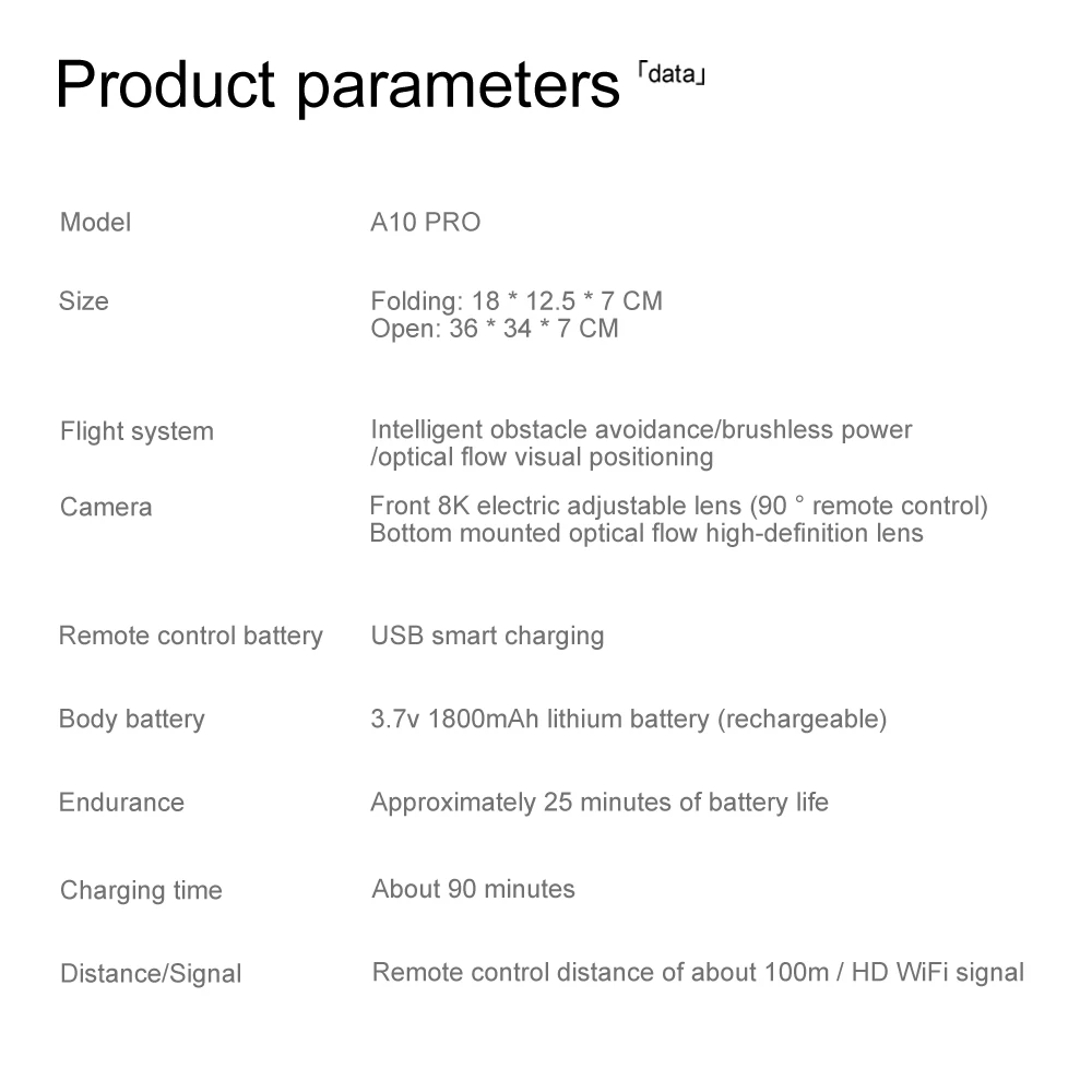 10. The product is light in size and weight, and the fuselage weighs 145g, which can avoid national air traffic control (drones over 250g in some countries need to be certified or registered, and 210g can avoid the trouble of verification and registration)